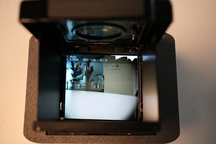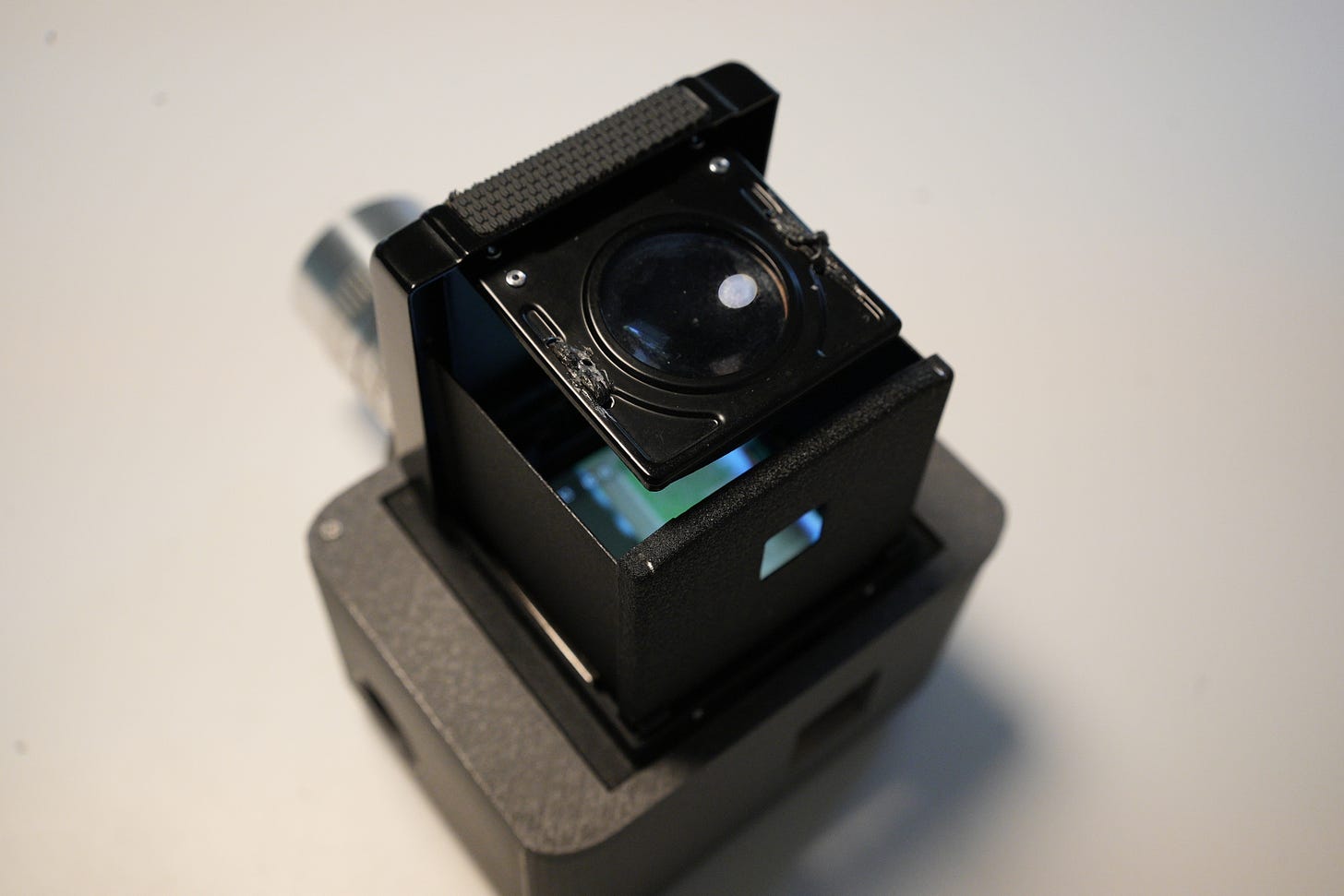 Friction-fit the Mamiya viewfinder into place.