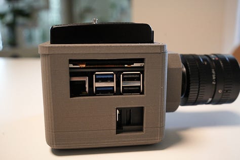 The camera runs on a custom Python script that ties everything together — shutter control, image saving, focus peaking, and more.