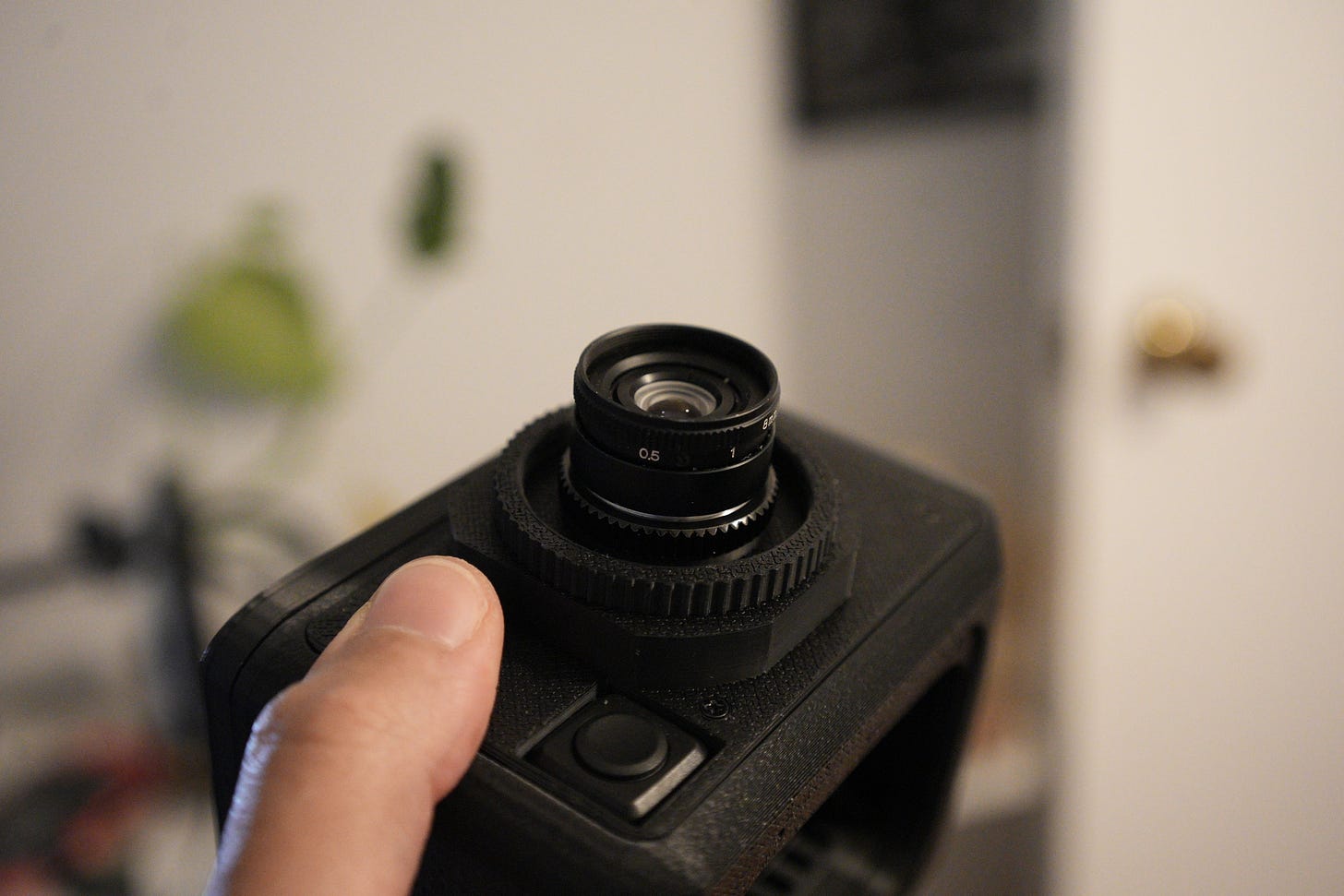For lenses, I went with my crappiest C-mount CCTV lenses just to see how they’d look. This one is an unbranded 8mm f/1.4 fixed-aperture lens. I honestly love how tiny it is and originally bought it for my Raspberry Pi HQ build.